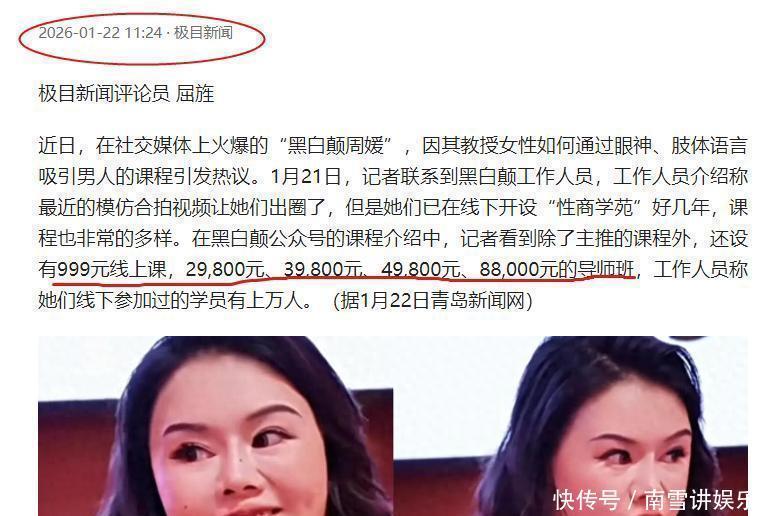 周媛的野心可不止于此,查查天眼查就知道,她旗下牵线搭桥的企业多达8家,业务范围也挺广,涉及教育咨询、医疗器械、成人用品还有生活美容这些行业。她的线下课程经常跟整形、私密护理这些美容医疗服务挂钩,打造成一个涵盖精神洗脑、身体改造,再到产品销售和创业加盟的全产业链条。这生意的毛利润能达到80%以上,比赚快钱还轻松。背包学院的现世版:一门靠取悦拉拢的产业变成了。周媛的“性商班”被挖出来,之所以引起这么大的反响,是因为它把一个藏在社会阴暗角落的“高端嫁产业链”,直接暴露在了公众面前。这事儿让大家不得不重新考虑一下,之前黄晓明公开宣布恋情以后,他的女友叶珂被爆出参加“名媛培训班”的风波。